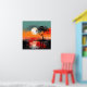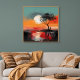 Esta obra de arte atmosférica captura un momento tranquilo de soledad bajo una puesta de sol radiante. Una figura solitaria se encuentra en la orilla del agua junto a un árbol azotado por el viento, recortada contra un vasto cielo pintado en cálidos tonos de naranja quemada, rojo coral y dorado suave. El sol sobredimensionado cuelga bajo en el horizonte, su luz se refleja a través de la superficie tranquila del lago, creando un espejo onírico de color y emoción.