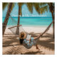 Escape to paradise with this serene portrait-format art print featuring a solo female traveler reclining in a hammock strung between swaying palm trees. She faces the turquoise ocean, book in hand and straw hat shading her face, as her toes gently sway over warm sand. The peaceful tropical setting and resort-style composition create a calming focal point for any living space, evoking the ultimate feeling of rest, renewal, and wanderlust.