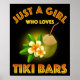 Sólo Un Chica Que Ama Los Bares Tiki. ¡Aloha! Lleve esto a su próximo fiesta luau hawaiano, vacaciones tropicales, o al bar tiki o a la habitación tiki y disfrute de una bebida tropical. Ideal para disfrutar de un crucero tropical por la isla, luna de miel, vacaciones de verano o vacaciones de primavera. Un regalo de verano perfecto para los amantes de Hawái, los bares tiki hawaianos y la cultura tiki. Disfrute de un agradable cóctel tropical o de una bebida mixta en la playa. El diseño tiene una imagen de un coco con una paja y flores amarillas de hibisco.