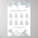 Welcome your guests with this seating chart featuring watercolor blue flowers. Make room for more (or less) guests by clicking the "customize" button and decrease or increase the font size. Extra tables can also be deleted. In addition to the placement of each guest.