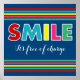 Sonrisa colorida, diseño de texto gratuito con decoración de rayas sobre fondo azul
