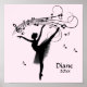 Silusiona negra de una bailarina de ballet con lujosa barra musical y notas.