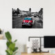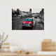 Esta es una impresionante foto de un mini rojo con fondo blanco y negro