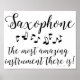 El saxofón el instrumento más asombroso es el texto con una banda de notas musicales, un diseño único de regalo de viento de madera para los músicos que regresan a la escuela, cumpleaños, vacaciones y graduación.