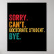 Póster Sorry Cant Doctoral Student Bye Phd Graduation Stu