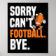 Póster Sorry Can't Football Bye Funny Quote Fan Football