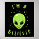 "I'm A Believer" (Soy creyente), gráfico alienígena diseñado por bCreative muestra una cabeza extraterrestre verde sonriente rodeada de lunas y estrellas. ¡Esto es un gran regalo para la familia, los amigos o un regalo para usted mismo! Este gráfico divertido es una gran adición al estilo de cualquiera. bCreative es un creador líder y licenciante de diseños y propiedades originales y de moda. ©LCT Creative. Licencia de bCreative.com