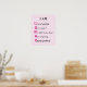¡Un poster inspirador para que declares lo maravilloso que eres! Cada carta de la MUJER forma la carta inicial de una frase poderosa para describir lo que es ser mujer. Soy cálido, de mente abierta, multitalentoso, inspirador de asombro, casi perfecto! En texto de escritura negro y rosa sobre fondo rosa violeta