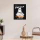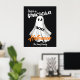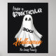 Poster fantasmal de Ghostly Greeting Un poster lúdico de Halloween que presenta un alegre fantasma personalizado con atrevidas letras de "BOO!" en el pecho. El diseño, con un telón de fondo negro dramático, se caracteriza por una tipografía caprichosa y colores festivos. El texto superior e inferior crea un mensaje estacional animado, mientras que el área de nombres familiares es totalmente personalizable, perfecto para agregar un toque personal a tu atormentado saludo. Ideal para esparcir alegría espeluznante con encanto y talento.