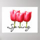 Celebre la primavera con este poster que presenta un trío de tulipanes pintados de color rosa con un texto decorativo de "primavera".