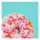 Esta muestra un donut con espuma rosa claro y rociado sobre posters