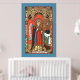 San Alfonso María de Liguori (1696-1787) era un noble italiano, un abogado convertido en sacerdote, un prolífico escritor, fundador de los Redentoristas, Obispo y Médica de la Iglesia. Aquí, en una capilla con un fondo de ladrillo rojo, se pone de pie vistiendo las túnicas de su Obispo —más suave y lisa— y llevando su personal crosier o pastoral. Su mano derecha se levanta con bendición. En el arte, cuando se le retrata en un ángulo con el espectador como en esta imagen, se le arroja una palmadita hacia atrás y una barbilla en el pecho. En mayo de 1768 fue golpeado por un terrible ataque de fiebre reumática que duró más de un año y lo dejó inválido hasta su muerte unos veinte años después. Por esta razón, es el santo patrón de la artricia reumatoide y el enfermo de edad. + Festín: 1 de agosto + Crédito de la imagen (SAU 039): Imagen antigua de San Alfonso Liguori de una impresión devocional de finales del siglo XIX en cromolitografía, publicada originalmente por la Socièté de St. Augustin, Brujas, Bélgica, de la colección privada de ephemera religiosa del diseñador.