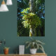 Helicóptero de estampido creciendo en el tronco de una palmera con un schefflera creciendo a partir del helecho de estampido en Tantalus, Oahu, Hawaii.