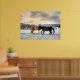 Acerca del "Reto del Invierno" - Un bonito semental de pintura palomino y un enorme Percheron tocado negro se enfrentan al atardecer en una noche de invierno. Foto tomada en un remoto rancho de caballos en Columbia Británica, Canadá. La idea de regalo perfecta para los seres queridos, especialmente los amantes de los caballos en tu familia o círculo de amistad. Una decoración única para un tema de ecuador. Fotografía de Skye Ryan-Evans ©