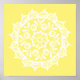 Esta mandala blanca se sienta en un tranquilo fondo amarillo. Los colores son alegres y tranquilos. Parte de la colección Brosya Mandala.