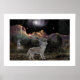 Arte visionario de Daniel B. Holeman Cielo nocturno con galaxia y estrella en ascenso brillando sobre el lobo en la naturaleza con montañas en el horizonte