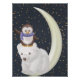 Un oso y un pingüino sobre una luna creciente blanca de perlas
