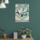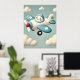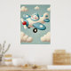 En un cielo caprichoso lleno de nubes esponjosas, un avión alegre y caricaturista se lanza con una sonrisa amistosa. El avión, pintado en tonos azules y blancos suaves, está decorado con detalles como una nariz roja, una gorra azul y una decoración en forma de estrella. Esta deliciosa obra de arte infantil captura la imaginación, evocando un sentido de aventura y alegría, perfecto para inspirar a las mentes jóvenes. Las suaves pinceladas y los colores pastel crean un ambiente apacible y acogedor, lo que lo convierte en una adición ideal a la habitación de los niños.