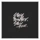 A stylish calligraphic design featuring the phrase "Stay Tender. Stay True." The text is rendered with a modern, brush-stroke aesthetic and a subtle red and cyan glitch or 3D chromatic aberration effect, creating a vibrant and contemporary feel against a neutral grey