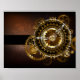 Antique, fantastic watches with gold and brass gears on a brown, rusty background. Steampunk style.