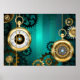 Póster Steampunk Jewelry Watch sobre un fondo verde