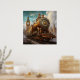 Con un encanto de otro mundo, que le hace perder el tiempo, esta impresión reimagina Londres con un giro de la punta de vapor mientras una colosal locomotora de latón lanza un truco.