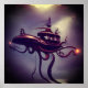 Fantastical AI rendered digital art painting illustrating a Steampunk fantasy ship complete with octopus tentacles