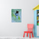 Whimsical Watercolor pintando la imagen de un pájaro Stellar Jay. Un ave tan impresionante y hermosa que es el ave provincial de la Columbia Británica. Ideal para su decoración rústica, rural o de granja. Gran regalo de decoración de pared para cumpleaños o Navidades, o incluso una casa caliente para una casa nueva. Fondo suave verde azul con un pájaro azul y una cabeza negra
