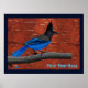 A primitive, or folk-art-style, image of a Steller's Jay (Cyanocitta stelleri) on the reddish inner or reverse side of the bark of a paper birch (Betula payrifera). Add your own text.