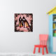 Zapatos de estilete negro sobre fondo rosado con encaje.