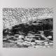 Puente de piedra de bonito sobre un estanque lleno de nenúfares de agua impresos en poster blanco y negro. Fotografía de la naturaleza por Susan.