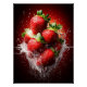 Un ilustracion digital de un marco congelante de varias fresas cayendo y salpicándose en el agua.