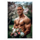 Lost in the garden of his gaze, the world fades away. His sculpted physique, a testament to passion, and the flowers, a symbol of devotion. His eyes hold the promise of a thousand whispered secrets. The bouquet, a silent language of love, speaks volumes. A man of strength and grace, holding a treasure of spring's finest.