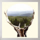Una pintura digital de una cabeza negra con vistas de un paisaje montañoso entre sus cuervos. Esta imagen no tiene fondo, puede elegir un color de fondo diferente.