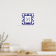 Póster Su Monograma, Patrón de Damasco Azul de la Marina