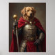 Sir Drools-a-Lot, el más poderoso recuperador en todo el reino, gobierna con una pata en una bola de oro y la otra atrapada alrededor de una pierna de pavo. Su armadura pulida se deslumbra bajo su capa roja que corre mientras recorre su reino con una sonrisa de soborno. A partes iguales caballero y imbécil, está listo para defender el castillo —o solamente el tazón. Un poster perfecto para cualquiera que crea que los perros son nobles, divertidísimos y están completamente a cargo.