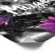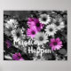 Dalias africanas púrpuras alegres en blanco y negro con imagen floral de color parcial con las palabras inspiradoras Suceden Milagros. Fotografía de flores por Susan.