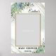 Marco de selfie para foto de baby shower con suculentas y eucalipto dorado,