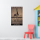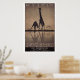 Dos jirafas beben en un agujero de agua. Este clásico poster de arte anuncia Sudáfrica. Una combinación perfecta de decoración.