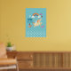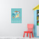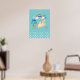 Un cartel que dice "pequeño soñador" pero que se puede cambiar / personalizar para decir algo diferente. Diseñado con lunares blancos a lo largo del borde inferior sobre un fondo azul verdoso. Un unicornio feliz retoza debajo de un colorido arcoíris con nubes esponjosas. Las flores, mariposas, corazones y fresas añaden un toque encantador a este diseño de dibujo a mano.
