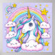 Iluminar la imaginación de tu pequeña con nuestro poster "Dreamy Rainbow Unicorn", una deliciosa adición a cualquier guardería. Esta encantadora obra de arte exhibe un onicornio con vigas de color arcoiris, cómodamente escondido entre nubes esponjosas y sonrientes, con estrellas brillantes diseminadas por un cielo púrpura pastel. Los gentiles ojos y la sonrisa amigable del unicornio son una invitación a un mundo de asombro y alegría, perfecto para inspirar dulces sueños y narración creativa. Este poster no sólo es una pieza vibrante de decoración sino también un hermoso símbolo de inocencia y magia que crecerá junto a su hijo.