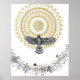El halcón se eleva hacia un sol mandala, recordándonos cambiar nuestra perspectiva y sacarnos de nuestro sufrimiento.