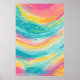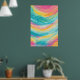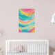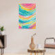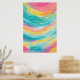 Este vibrante diseño abstracto capta la esencia de un paraíso tropical soleado. Las olas de turquesa, rosa, amarilla y verde que agitan el agua crean una composición dinámica y estratificada que recuerda a las piscinas de marea colorida y a las brillantes superficies oceánicas. Patrones juguetones de puntos, zigzags y formas orgánicas bailan a través de la superficie, evocando las diversas texturas y formas de vida que se encuentran en los arrecifes de coral. La paleta de colores cálidos y enérgicos nos recuerda los perezosos días de verano, las vacaciones exóticas y la fascinante belleza de los ecosistemas más coloridos de la naturaleza.