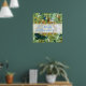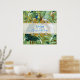 Dos pavos reales y plumas sobre un fondo de hojas verdes tropicales salpicadas de plumas exóticas boda por un boda o diseño de decoración para dar las gracias a tu huésped.