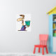 Un hombre de pie sostiene una caja que tiene la calidad de palabra. Este diseño parece realmente efectivo en este Poster