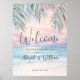 At the top, “Welcome” appears in large, flowing script for a graceful touch. Below, the couple’s names, wedding date, and important event details are displayed in a clean, modern serif font for a timeless and polished look. Fonts are shown in dark gray, but all text, fonts, and colors can be customized to perfectly match your celebration.