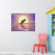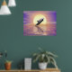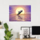 Poster con mi tercera obra de arte de un delfín saltando del agua y un sol brillante.