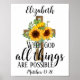 Customizable name with scripture from Matthew 19:26 "with God all things are possible" with watercolor sunflowers and a cross, with script and serif typography.