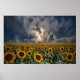 Un campo de girasoles amarillos en una tormenta veraniega.