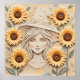 Este caprichoso poster presenta una divertida textura elevada de una Bruja dulce rodeada de hermosos girasoles. Terminado como una impresión de arte de medios mixtos.
